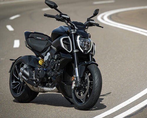 The V4 Granturismo takes center stage on our muscle bike and allows it to express its personality to the fullest. Ducati's four-cylinder engine guarantees high performance, combined with smoothness and regularity, at every rpm. The new chassis combines ideally with what have always been the Diavel's strengths, such as its characteristic riding position and comfort in medium-range touring. In addition, thanks to a major weight reduction, handling and agility improve noticeably.